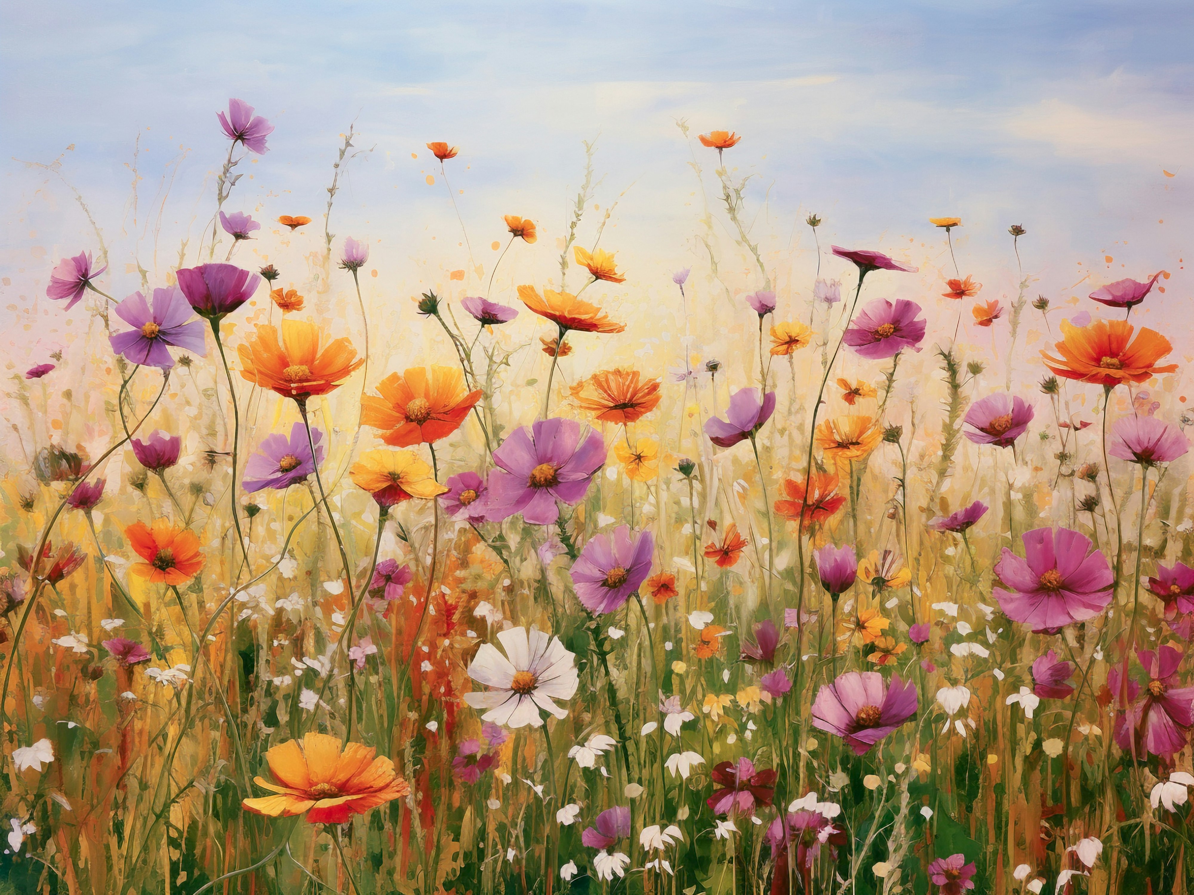 Transform your device with the stunning 'flower field 2' wallpaper. The essence of illustration, illustration, flora and fauna, colorful, spring, nature creates a visually pleasing masterpiece.
