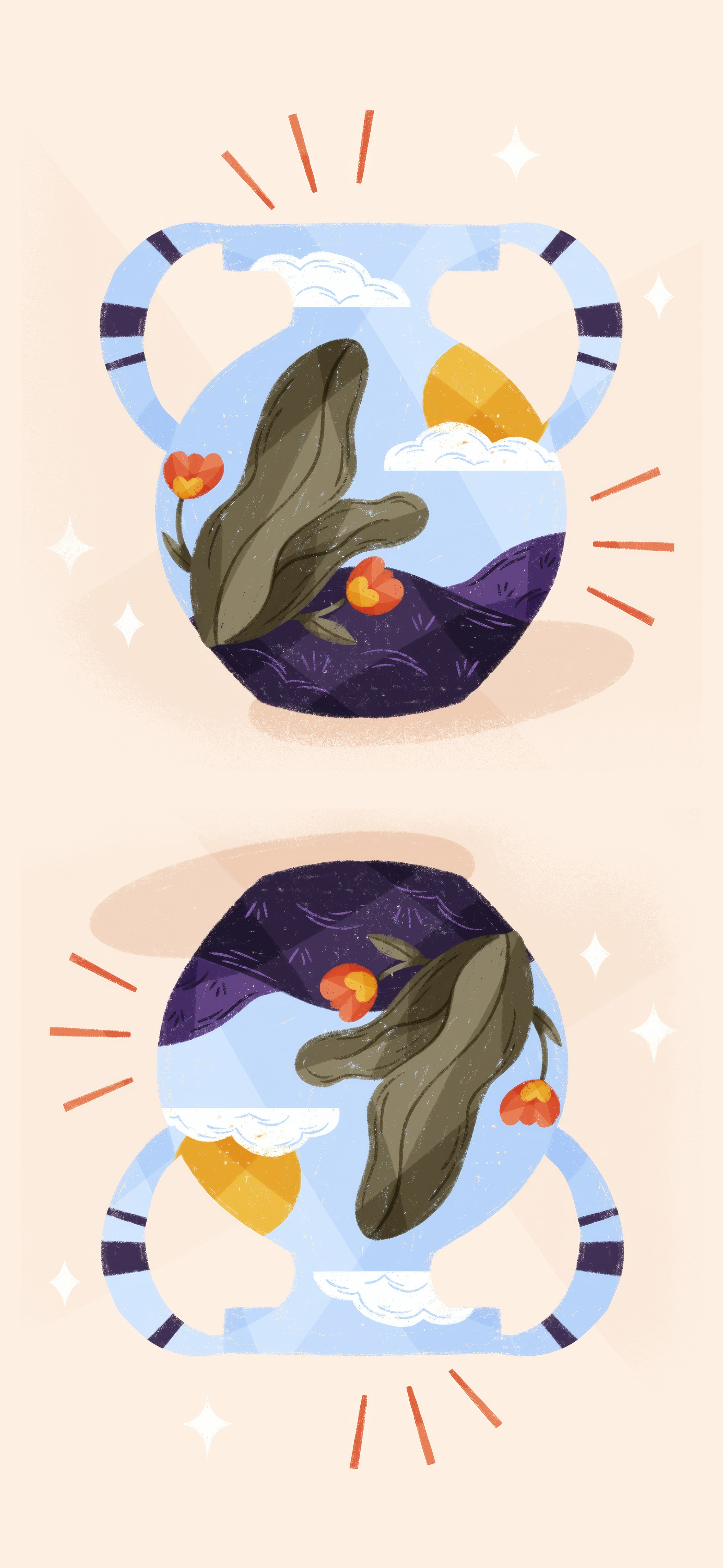 Take a visual journey with the life in a pot wallpaper, where the delicate illustration, abstract, illustration, digital art, colorful, painting, abstract create a peaceful display.